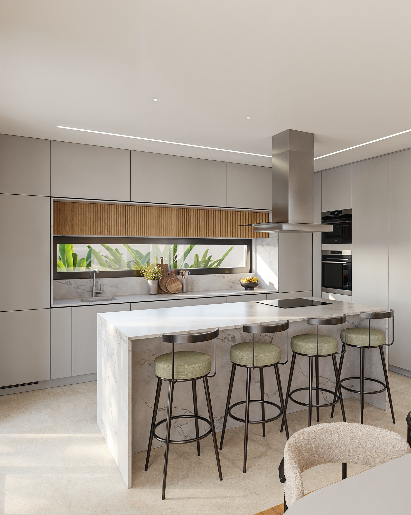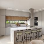 - Bancadas em quartzo e móveis hidrófugos lacados