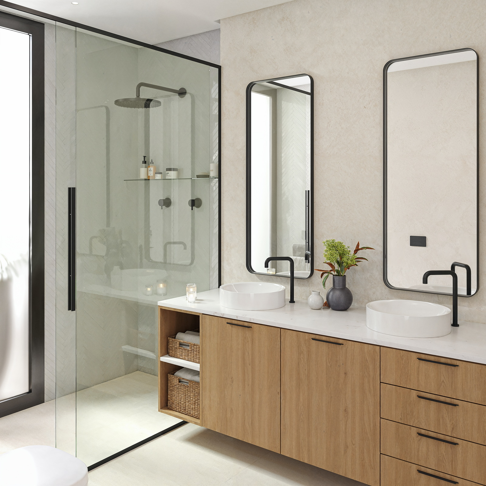 - Louças suspensas e torneiras termostáticas
